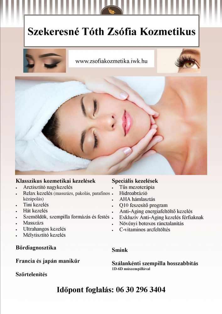Szekeresné Tóth Zsófia vagyok, a középiskola után tanulmányaimat a Szegedi Tudományegyetem Jogi karán folytattam, itt szereztem diplomát, de soha nem éreztem magaménak ezt a szakmát. A kozmetika viszont mindig is a hobbim és vágyam volt. Rá kellett jönnöm, hogy "Ha a hobbid a munkád az nem is munka", így lettem kozmetikus, ami igazán én vagyok. A szakmát Szegeden egy újtípusú, holisztikus szemléletű magániskolában sajátatottam el. A holosz görög szó és egészet, teljességet jelent. Holisztikusnak nevezzük azt a szemléletet, amely az embert a maga teljességében: testi, lelki, szellemi egységnek tekinti. Lényege, hogy segítek a bőrprobléma okát feltárni, nem csak tünetileg kezelni. Meggyőződésem, hogy a mai világban már nem elég egy bőr kitisztítása, masszírozása és szépítése, egy kozmetikustól többet várnak. Filozófiám, hogy vendégeim személyükre szabott kozmetikai kezelésban részesüljenek. Ennek érdekében minden eljárás, kezelési módszerem kialakításánál messzemenőkig figyelembe vesszem vendégeim igényeit és adottságait. Fontos szempont, hogy a jótékony hatás ne csak pillanatnyilag érvényesüljön, hanem hosszú távon is tartós javulást eredményezzen, melyhez a kiváló minőségű Solanie Professional Cosmetics termékcsaládot használom. A természetes alapanyagok és professzinális gépi kezelések együttes hatásának köszönhetően lelki és testi megújulást garantálok.